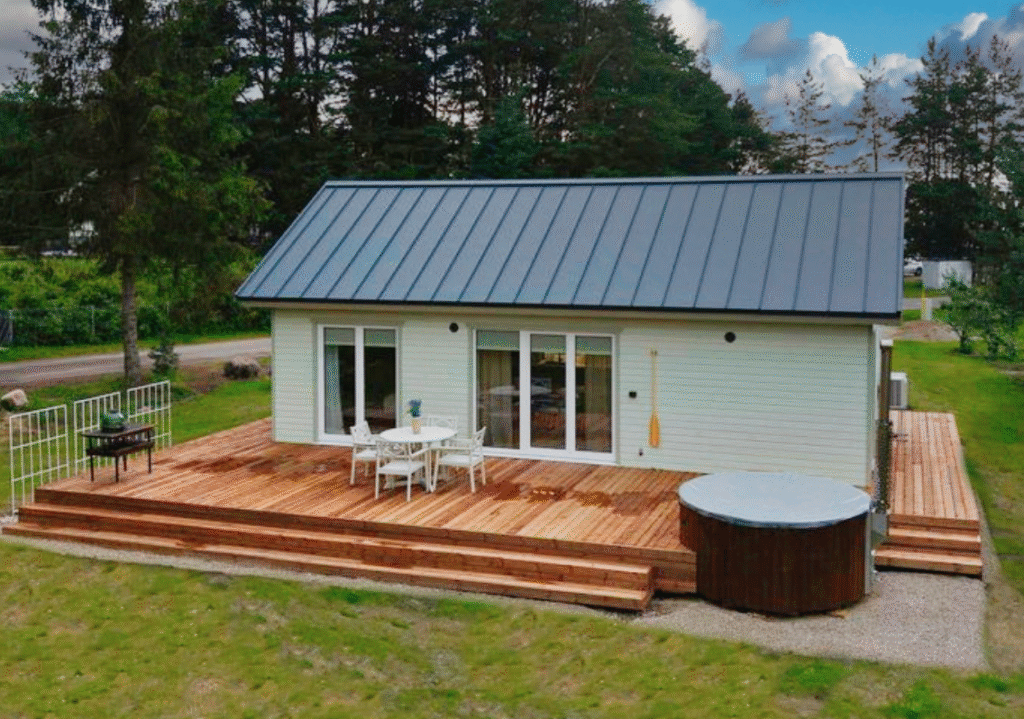 Modernne saunamaja, mis on mõeldud aastaringseks kasutamiseks.