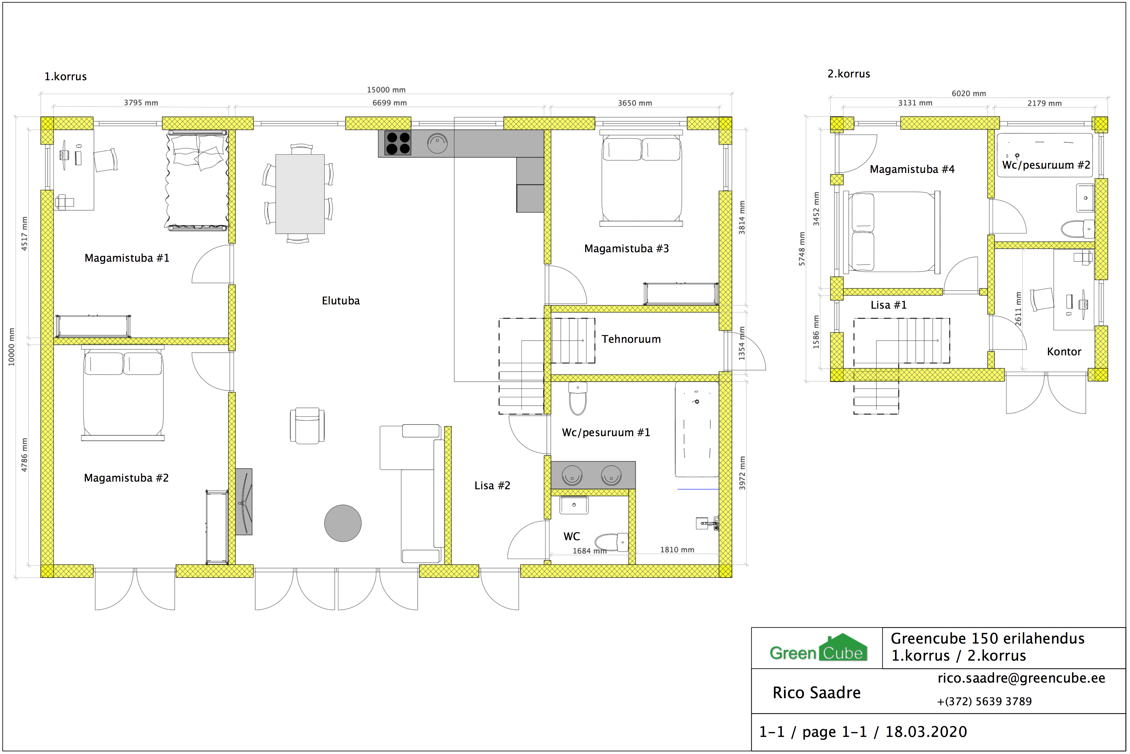 Greencube 150 on 149.60 ruutmeetrine moderne elamu, mis on mõeldud aastaringseks elamiseks. Hoone talakonstruktsioon on liimpuidust (GL-24 tugevus; 120×360). Ja kogu hoonel kasutatav puitpruss on C24 tugevussordist. Kahelt poolt on prussid kaetud OSB plaadiga, mis annab hoonele jäikuse.